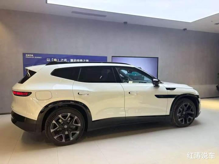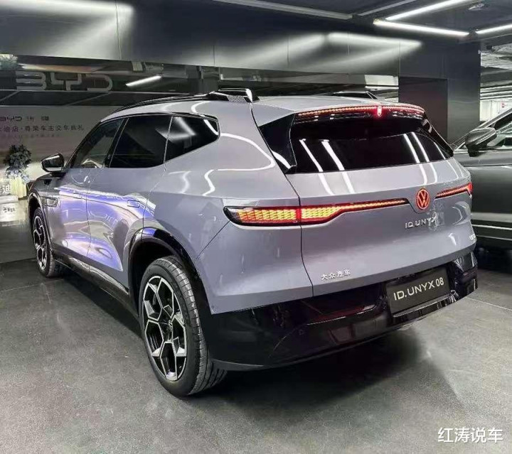 与众08属于中大型SUV级别,整车长宽高辨认达到了5000*1954*1688毫米,轴距达到了3030毫米,车身轮廓舒展大气,后翼子板上方超过的线条增多了肌肉感,选拔避讳式电动门把手,亮玄色轮眉、双色轮毂以及车顶末端的扰流板等策划,耕种了融会感。