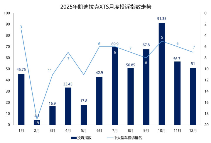 汽车门网投诉数据线路:2025年凯迪拉克XTS的投诉指数达到了548.8,同比大涨了101%,在年度中大型车投诉指数榜单中位列第九名。从月度走势来看,凯迪拉克XTS的全年投诉指数举座说明相对巩固,均不超过三位数。这其中,唯有9月其投诉指数有澄莹涨幅,或出现小股鸠合投诉事件。