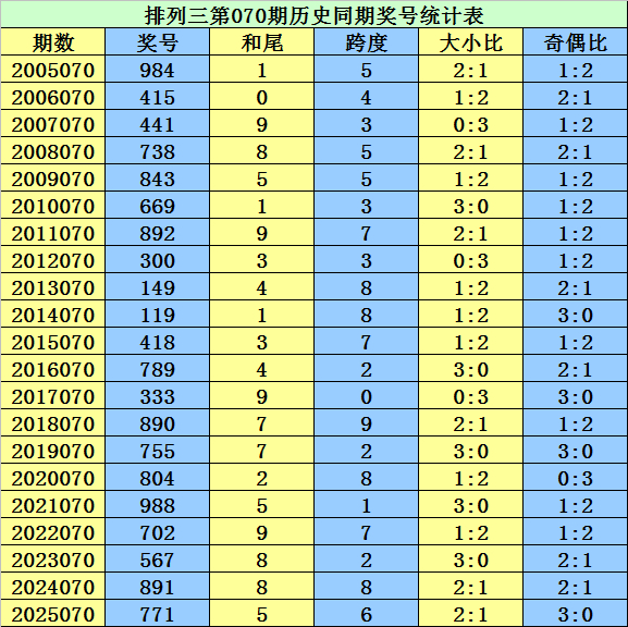 和尾保举:摆设三第070期历史同时,和尾奇偶比开出14:7,大小比开出12:9,012路比开出7:7:7,奖号和尾开出期数分离为:和尾 9→4期,和尾1、5、8→3期,和尾3、4、7→2期,和尾0、2→1期,和尾6→0期,本期相宜热心奇和尾出现,参考和尾1。