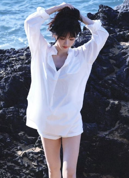 田曦薇的海边唯好意思仙女妆造,