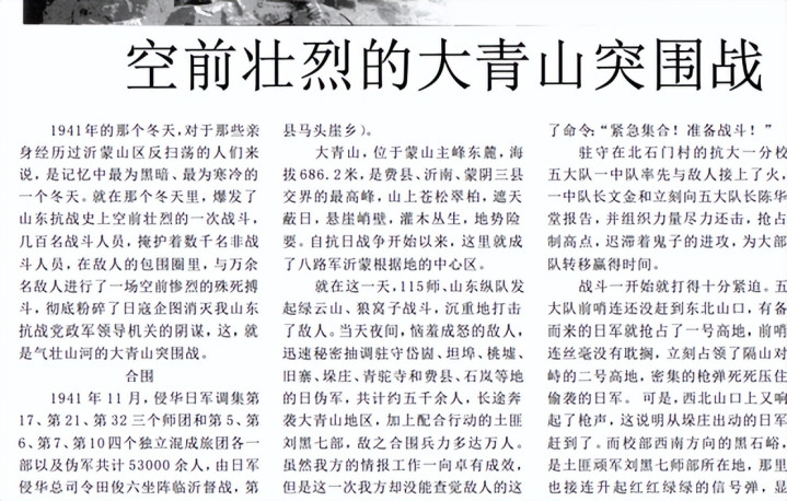 大青山解围战,是山东抗战史崇高血最多的一次解围。