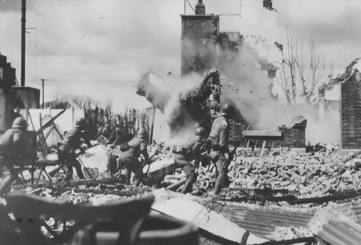 上了岸之后,战斗就变成了近距离的肉搏。杨家宅所在的中国守军阵脚上,疏漏几十名士兵还在坚执相背。他们打出来的火力至极猛,机枪和步枪轮换射击,纰漏里还络续往外扔手榴弹。