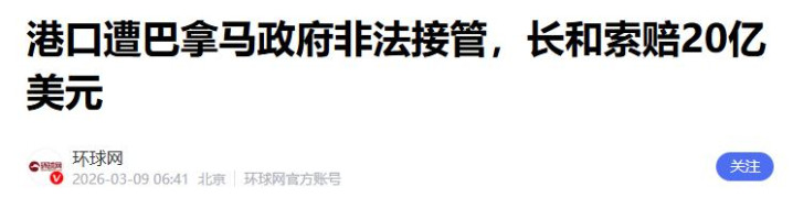 环球网——2026年3月9日——口岸遭巴拿马政府罪人收受,长和索赔20亿好意思元