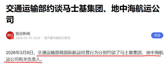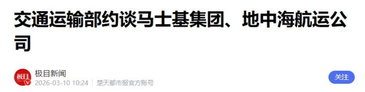 极目新闻——2026年3月10日——交通运输部约谈马士基集团、地中海航运公司