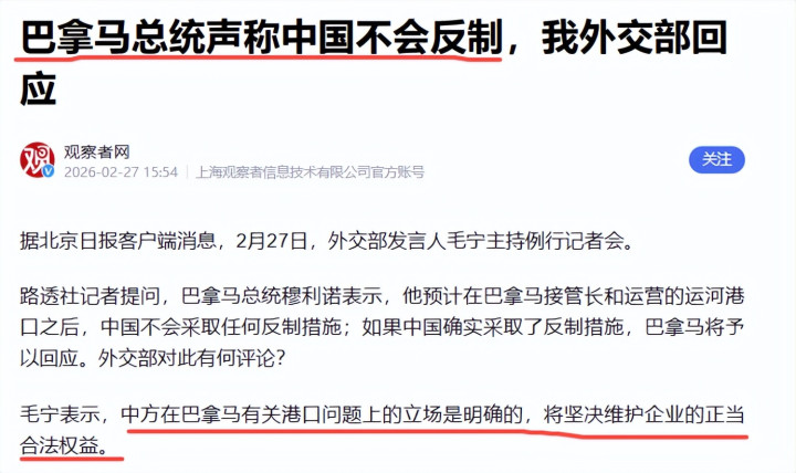 酬酢部领先表态,对巴拿马的作念法示意抗议,中方会坚强接济企业正大正当权柄。