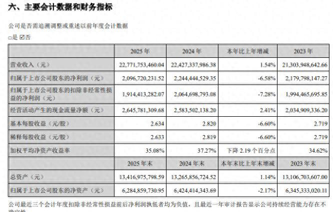 高比例分成的同期,苏泊尔的合座筹办基本保握富厚。2025年,公司收场买卖收入227.72亿元,同比增长1.54%;归母净利润20.97亿元,同比下落6.58%。