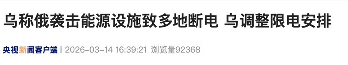 乌称俄伏击动力枢纽致多地断电乌疗养限电安排