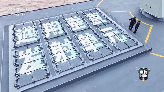 总台记者李笑琪:接下来咱们就要来到遨游船面的位置,会发现这里很广阔,那就意味着不错起降更大型的直升机。死后有两个大门,就代表不错同期搭载两架直升机。