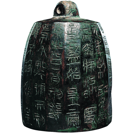 秦铜权,内容是秦王政二十六年和秦二世元年融合度量衡的两个诏文。秦权是秦融合天下后引申货币、度量、笔墨等轨制的物证。起原/秦始天子陵博物院